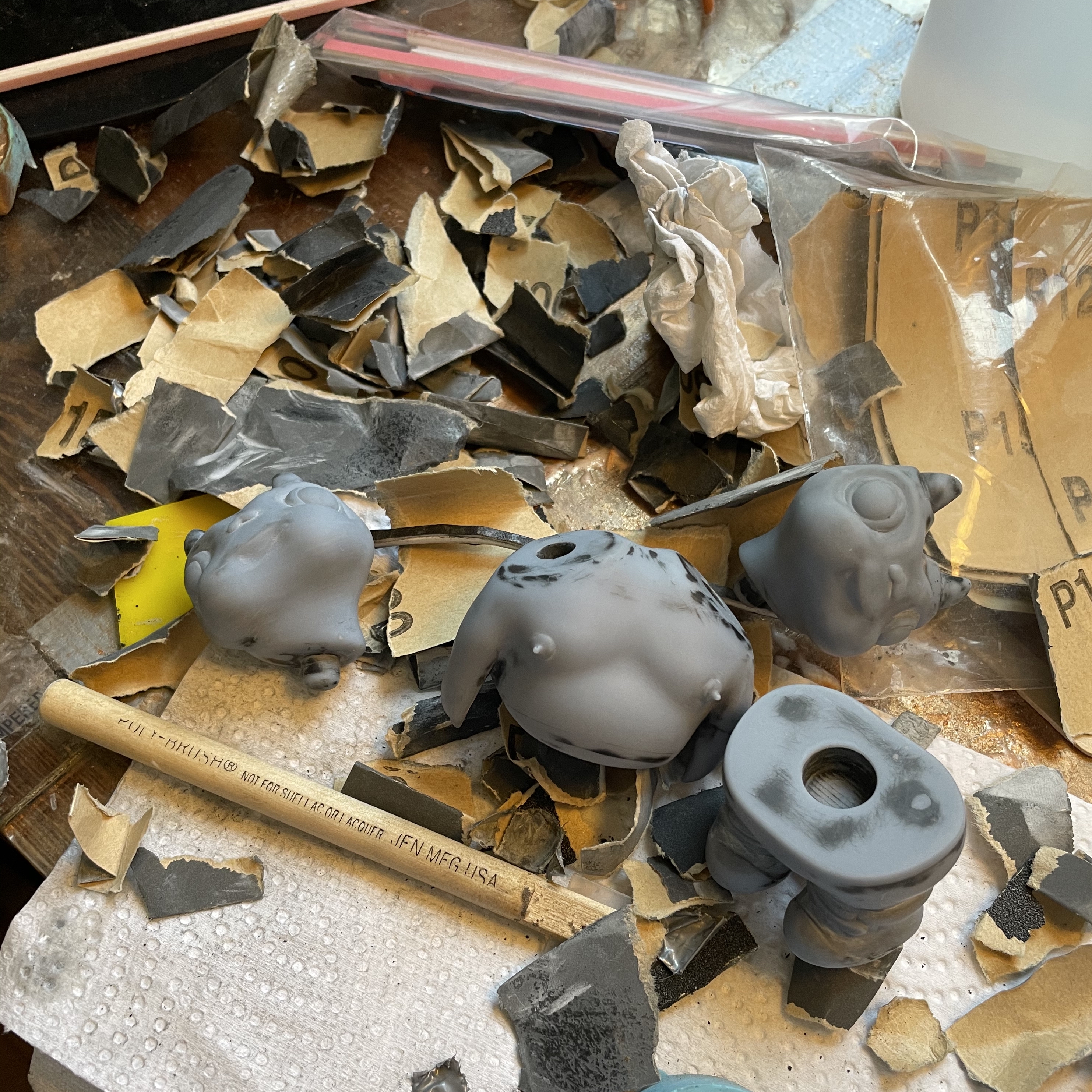 SAS Toys is my ongoing designer and bootleg toy brand. I am consistently developing and producing new figure designs under this label which I sell on Etsy. Every figure I produce is custom-modeled in ZBrush, then 3D printed using a resin 3D printer. I then apply an extensive process of filling, sanding and spray-coating these models to a professional finish at which point I use them as the original to produce silicone molds. These molds are then used to cast the final designer toys out of various colors of resin through processes of pressure treating or roto-casting. Additionally I design all the packaging in Photoshop and Illustrator.