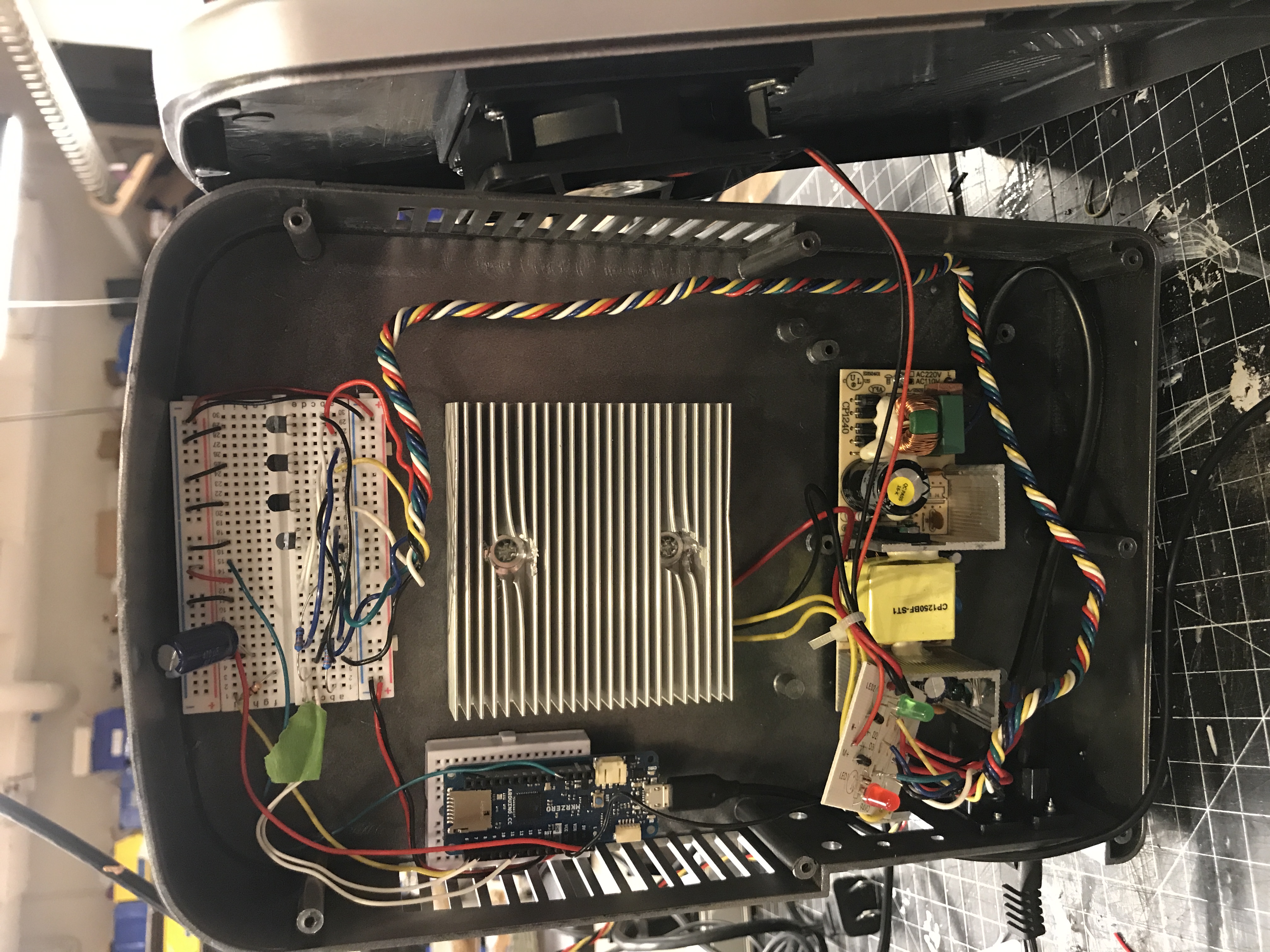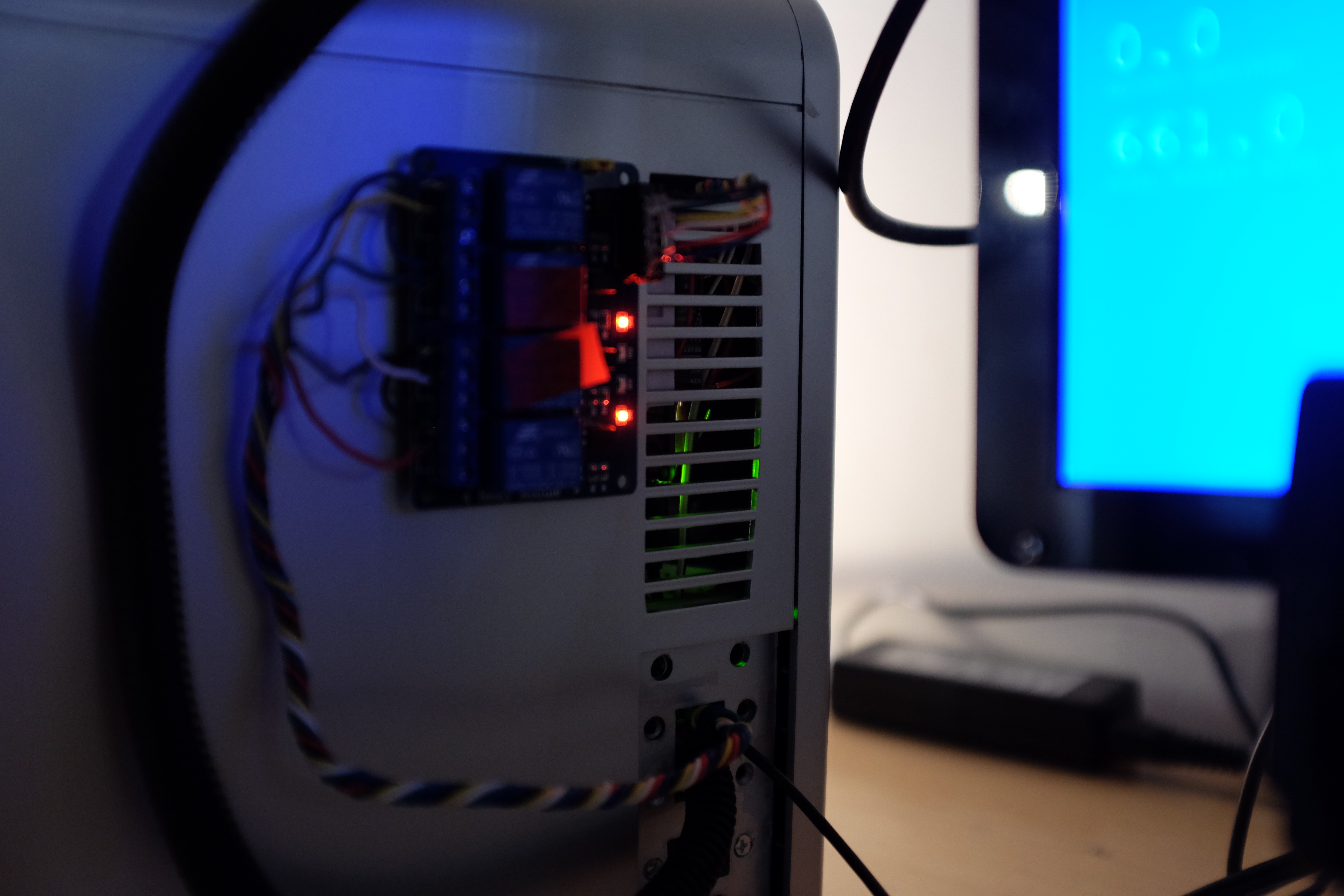 “The Nature of Internet” is an art piece that makes use of LEDs, Arduino programming, custom circuitry and Processing code to bring necessary attention to the increasing environmental cost of bandwidth-heavy internet use. The centerpiece is a USB-connected unit which in its default state cools the literal mini iceberg inside. However when the user of the connected computer visits a website requiring significant bandwidth, the device switches to heating mode, causing the iceberg to quickly melt. As it melts into the lower electronics, water eventually accumulates to the point that a simulated short circuit is triggered, rendering the connected computer inoperable. In this way the device also illustrates the self-destructive nature of environmentally unfriendly activity. And to make the entire message explicit, a connected display streams the raw data being sent and received, pulled from a network tracker interfaced with a Processing sketch.
